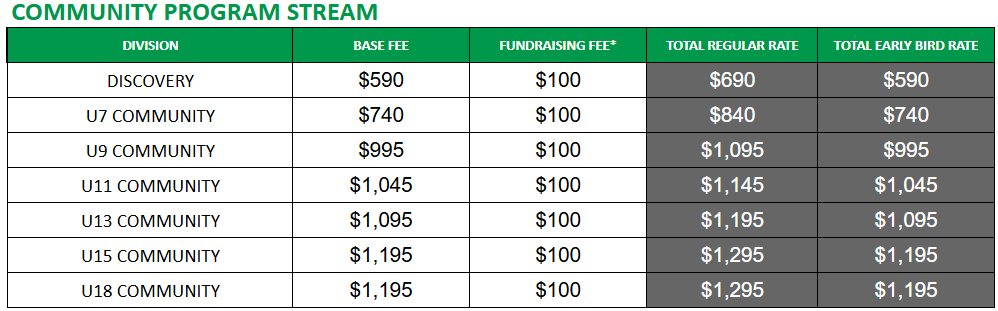 • **Registrations received prior to July 15 at 12:00am receive a $100 early bird discount off the regular rate for Community and Competitive programs